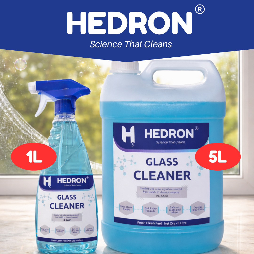 Hedron Glass Cleaner is developed for superior clarity and shine on all glass surfaces. Ideal for windows, glass doors, mirrors, car glass, and windshields.