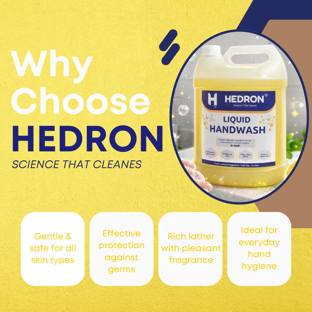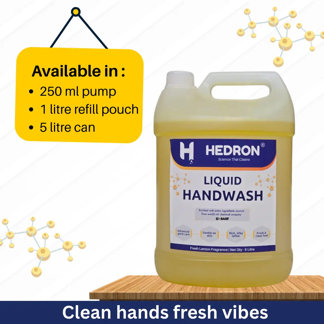 Hedron Liquid Hand Wash is a premium skin-friendly hand wash designed for everyday hand hygiene at homes, offices, hospitals, and commercial spaces. Scientifically formulated with high-quality BASF chemicals, it effectively removes dirt and germs while maintaining the natural softness of hands.